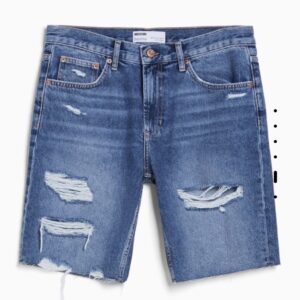 BERSHKA SLIM FIT RIPPED DENIM BRMUDA SHORTS